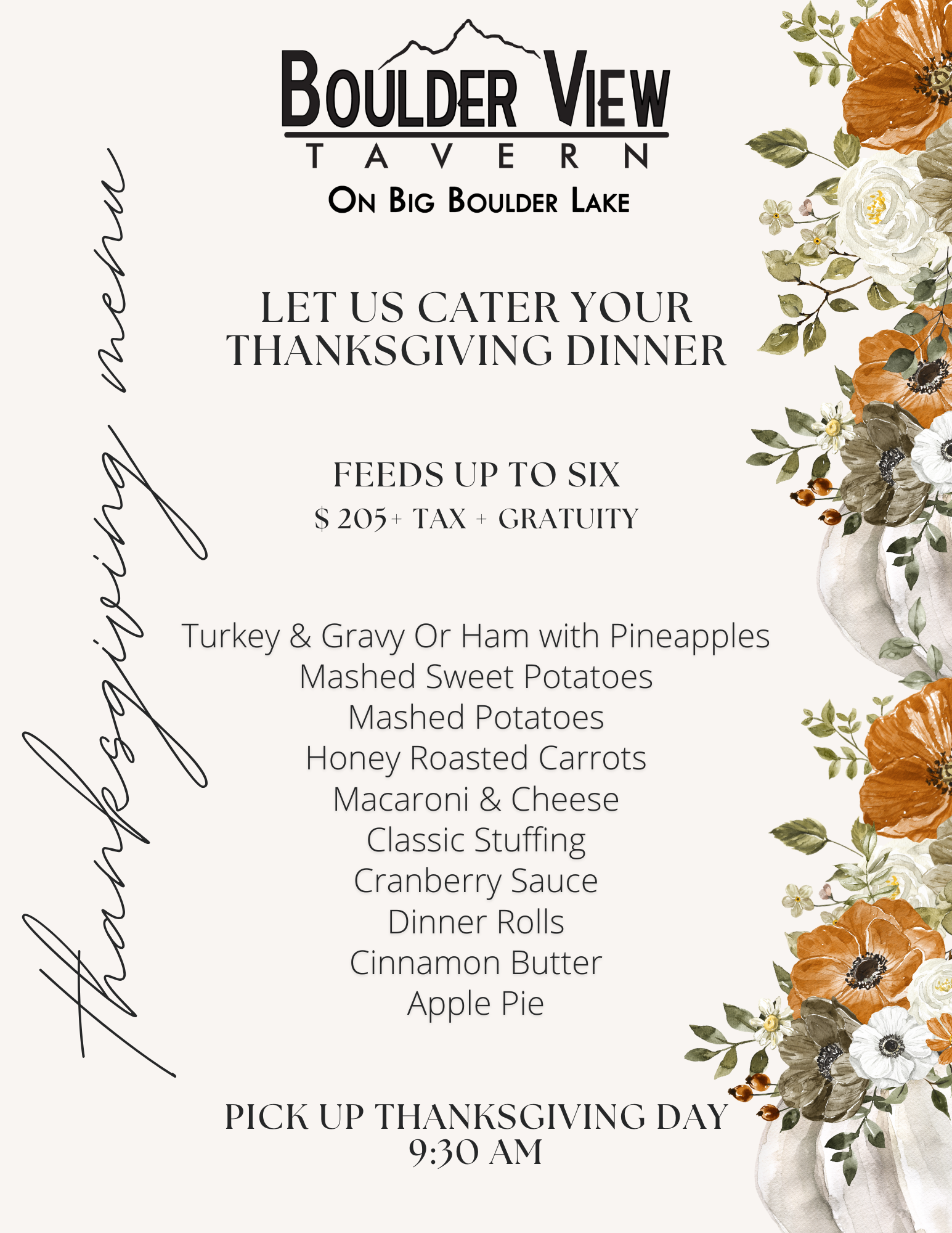 Order by Sun, Nov 23! Orders are available for pickup on Thanksgiving Day, Thurs, Nov 27 at 9:30am.